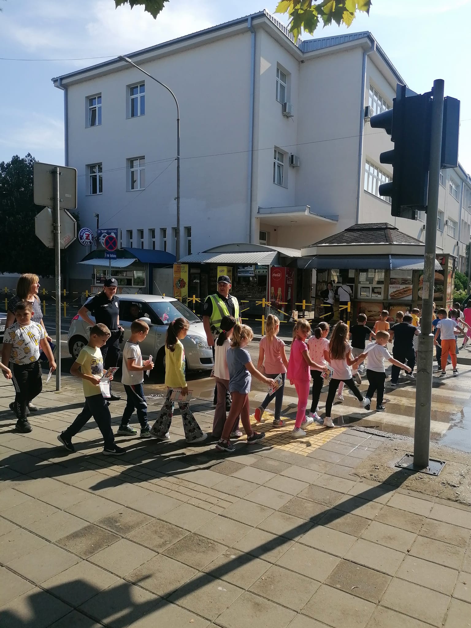 Nakon predavanja koje je održao Saša Milošeski, zamenik komandira PI Kladovo za bezbednost u saobraćaju i radionice sa pitalicama o saobraćaju koju je vodila Branislava Berić, sekretar crvenog krsta Kladovo svi zajedno uvežbavali su prelazak pešačkog prelaza kod semafora i pešačkog prelaza bez semafora. Svim učenicima su podeljeni i rasporedi časova Crvenog krsta Srbije sa odštampanim osnovnim pravilima ponašanja u saobraćaju.