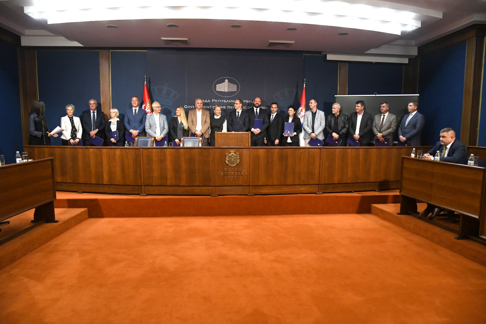 Beograd, 24. oktobra 2025. - U okviru Projekta razvoja lokalne infrastrukture i institucionalnog jaèanja jedinica lokalnih samouprava (LIID), u Vladi Srbije danas su potpisani ugovori o dodeli bespovratnih sredstava za 15 lokalnih samouprava, za projekte vredne gotovo 12 miliona evra. Prisutnima se obratio predsednik Vlade Ðuro Macut. FOTO TANJUG/ VLADA REPUBLIKE SRBIJE/ SLOBODAN MILJEVIÆ/bs