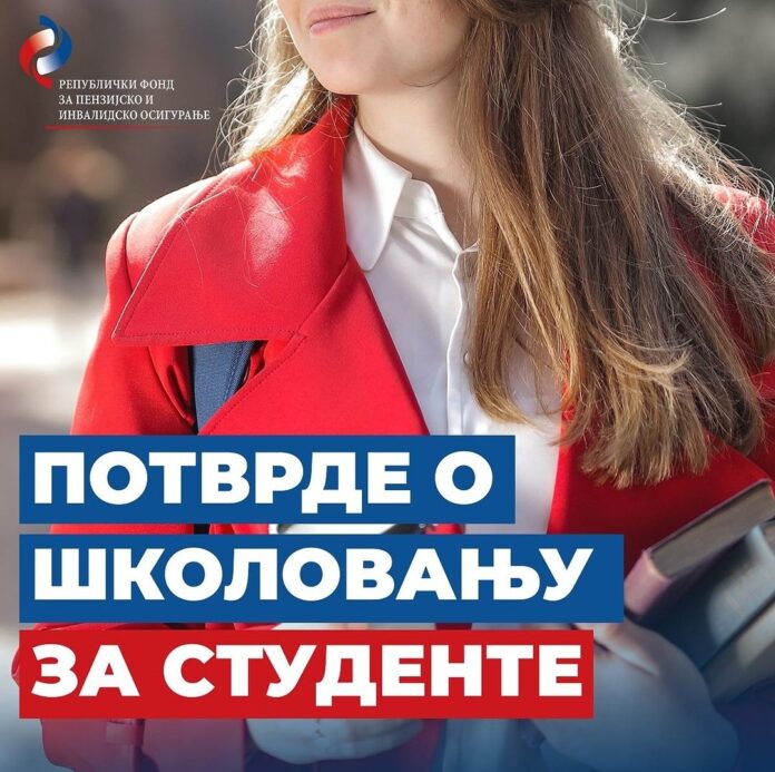 Republički fond za penzijsko i invalidsko osiguranje podseća da je do 25. oktobra rok do kada studenti koji koriste porodične penzije moraju da dostave potvrde o školovanju da im ne bi bila obustavljena isplata prinadležnosti.