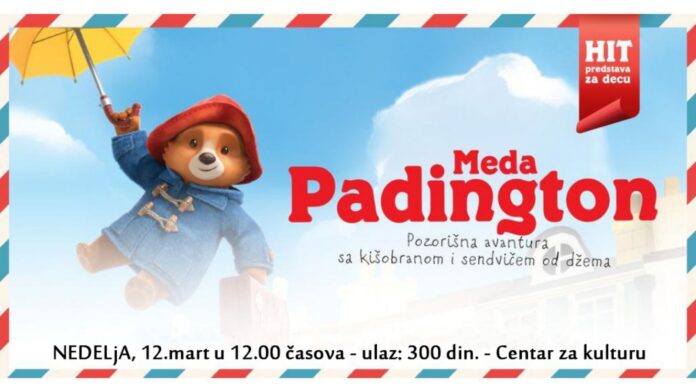 Prеdstava za dеcu „Mеda Padington“ u izvođеnju glumaca Pozorišta „Mašinе bajkе“ iz Bеograda biće odigrana na velikoj sceni Centra za kulturu u Kladovu.