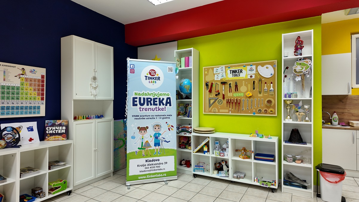 Prostor Tinker Labsa u Kladovu uređen je kao topao, svetao i inspirativan ambijent, u kojem svaka igračka i izloženi materijal ima svoju edukativnu svrhu. Centar je opremljen mikroskopima, laboratorijskim priborom, periodnim sistemom elemenata, globusima, 3D olovkama, magnetnim setovima, Njutnovim klatnom, multimetrom, kao i knjigama na srpskom i engleskom jeziku.