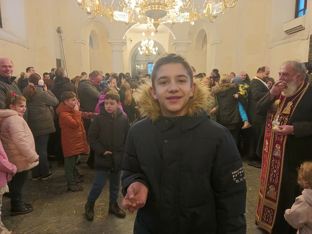 Smatra se da onog ko u svom parčetu pogače pronađe novčić sreća prati cele godine. Uprkos hladnom vremenu na Božić česnicu su podelili brojni mališani i njihovi roditelji.